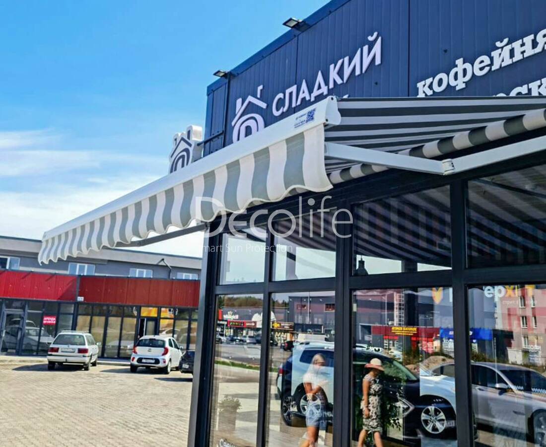 Маркиза открытая Decolife G90, реализован партнером ООО "Европейские Солнцезащитные Системы" - кофейня "Сладкий домик"