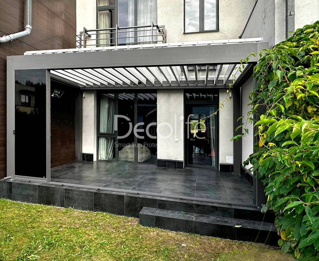 Пергола Decolife Bioclimatic B700-25П + Раздвижное остекление S150 - г. Домодедово