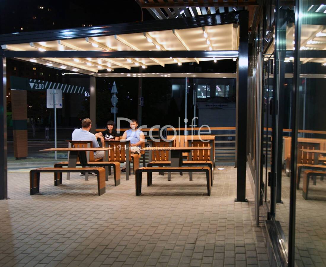 Тентовая пергола Decolife Basic&Pro New, реализовано партнером "TENT VERTEX" - г. Алматы, чайхана "Navat"