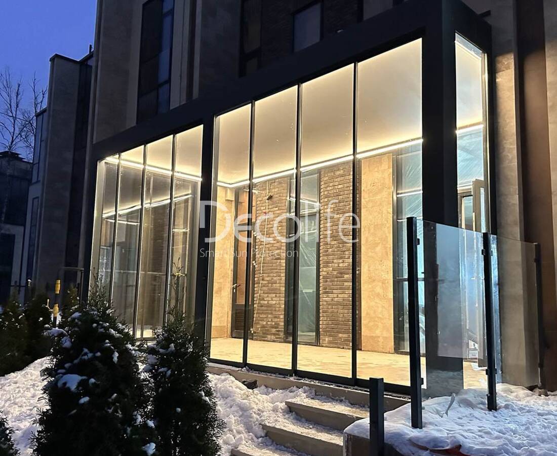 Пергола Decolife B600 PIR + Панорамное остекление S500, реализовано партнером "ООО Люкс Террас" - г. Москва